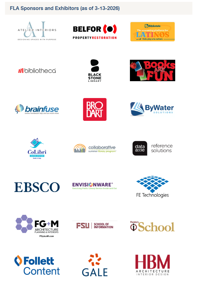 Registration Now Open! THANK YOU SPONSORS AND EXHIBITORS (as of 3-13-2026) FLA Flyer (7) Insignia (1).pdfLibrary Conference Handout (2) Niche Academy (1).pdf